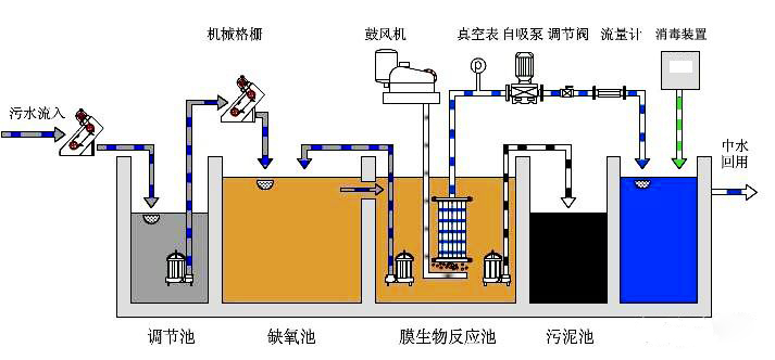 根據氣浮裝置模塊分離出來除去廢水中的絮團。歷經破乳反映除去乳化油后的廢水進到生物膜微濾設備,在爆氣情況下廢水與池里微生物菌種開展充足觸碰,水里的有機化學空氣污染物被微生物菌種吸咐、空氣氧化、溶解,而且由微孔濾膜部件取代沉砂池保持污泥分離出來,根據降解與微孔濾膜分離出來的相互功效,使廢水中的空氣污染物濃度值大幅度降低,出水量進到高效送風口,廢水中的懸浮固體再度經過慮截流后排污,出水量可超過環保標準。