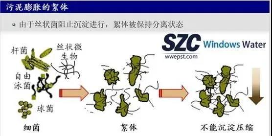 污泥膨脹絮狀物。